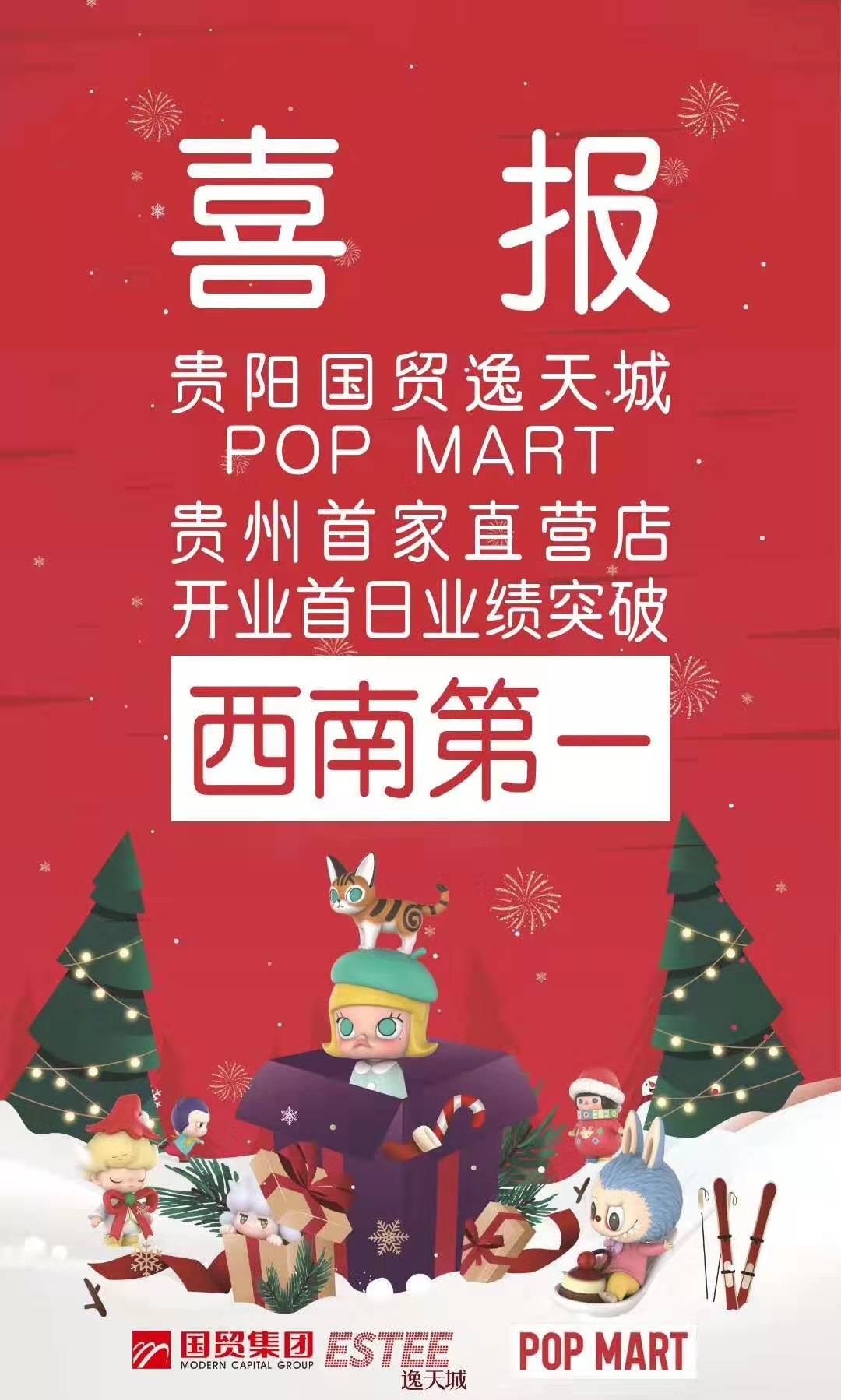 12月21日,pop mart贵州首家直营店开业,选址国贸逸天城购物中心,该店同时也是pop mart贵州首家实体店。