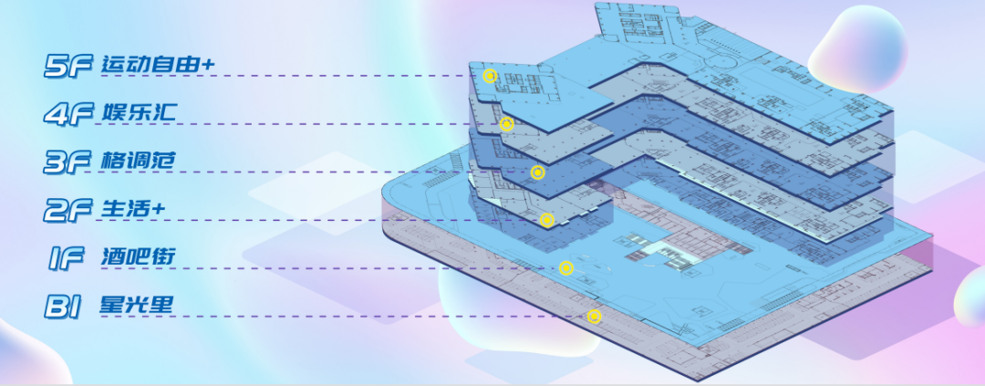 在业态组合方面,其分别于负一层至五楼规划了星光里、酒吧街、生活 、格调范、娱乐汇、运动自由 五大核心主题,涵盖时尚零售、网红餐饮、潮玩酒吧街、娱乐休闲体验等业态。