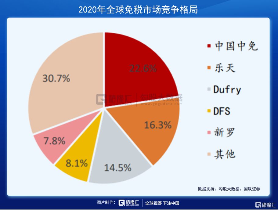 2020年,中免在全球免税市场份额已经高达22.6%,高于韩国乐天的16.3%、以及dufry的14.5%。