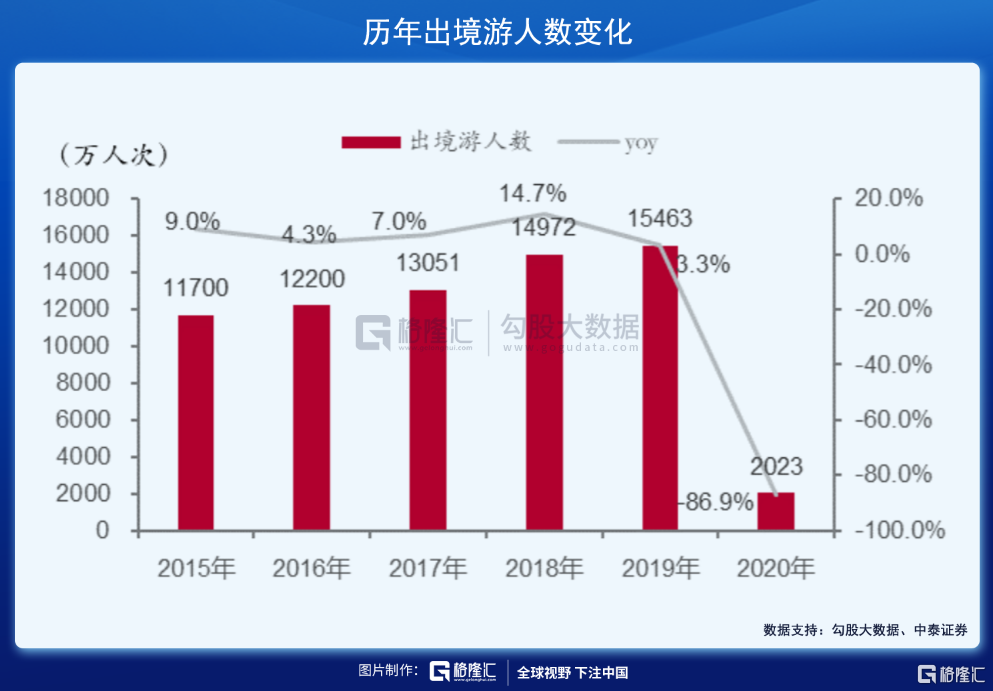 很显然,中国成功控制疫情,免税行业受到冲击的程度要远远低于全球。此外,海外愈发严重的疫情导致奢侈品消费回流。2020年,中国出境游人数仅2023万人,同比大幅下滑86.9%,而国内奢侈品消费占比达到70-75%,同比大幅提升40%-45%,形成鲜明对比。