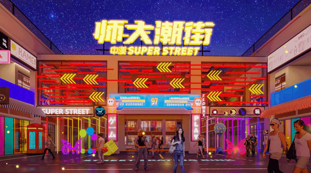 作为面向青年群体的现代商业街区,师大潮街的外观设计融入多个潮流元素如垂直“赛道”、彩虹“阶梯”、黑白“琴键”等等,且每个建筑的外围都绘上了动感现代的图案,创作独一无二的潮爆外观。值得一提的是,潮街入口处将打造一处由集装箱和滑板组成的“打卡点”,大门右侧是“彩虹停车场”,车位用彩色沥青交错覆盖的方式进行划分,大门左侧为集装箱街区生活空间,由单个箱体拼接搭建......