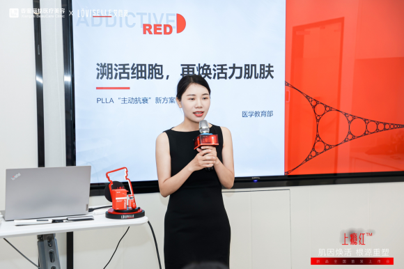 随后,圣博玛南区医学培训经理陈翠红女士进行了艾维岚·润颜的新品解析,聚焦新品“上瘾红”的四大核心优势:
